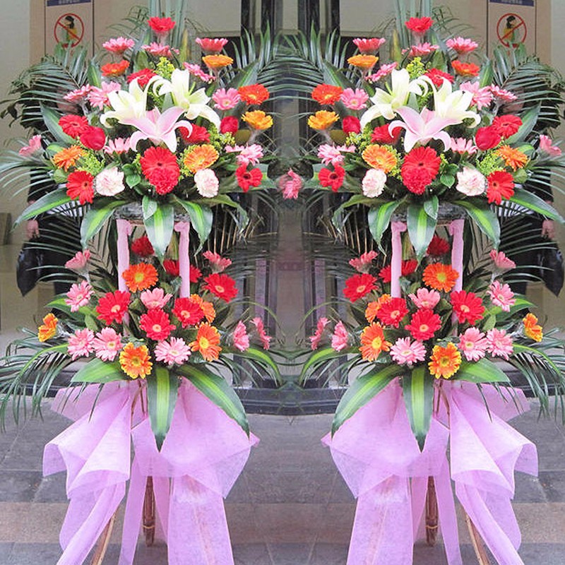 朋友开业,很满意!!!上午准时送到!朋友开业很满意!!!花篮也很丰满