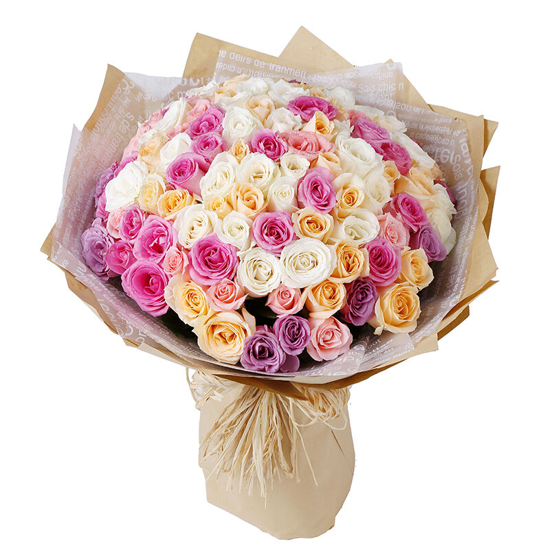 【旧时月色】精选99朵香槟玫瑰,搭配尤加利叶装饰。