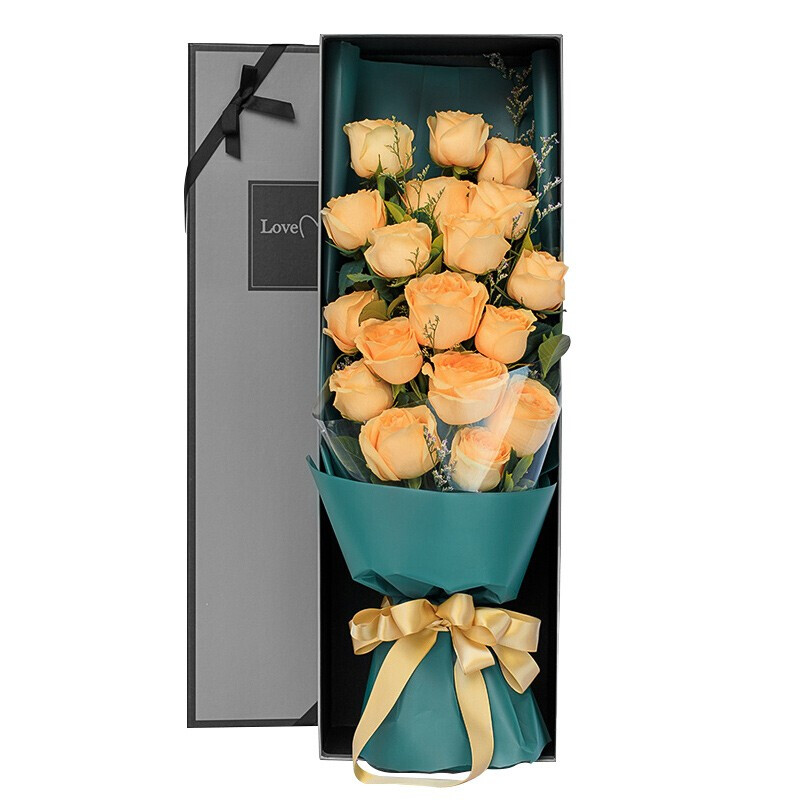 【真情告白】19朵香槟玫瑰,搭配满天星丰满装饰。