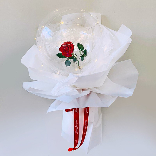 【波波球-网红】 1朵精品红玫瑰,可亮灯带一条,波波气球(玫瑰颜色可替换)