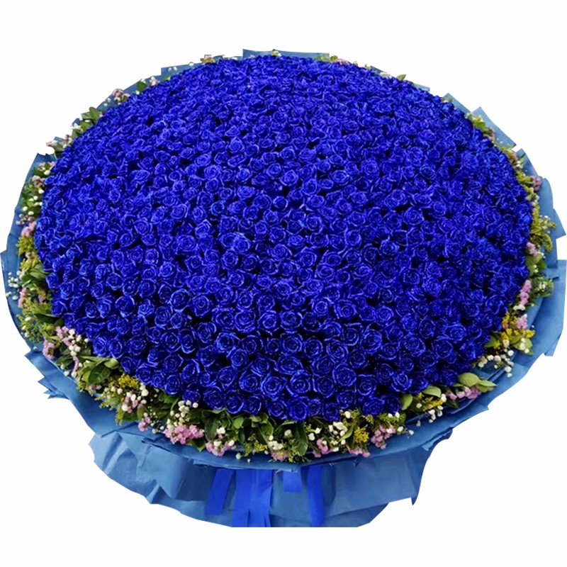 【蓝色大海】99朵蓝玫瑰,栀子叶,相思梅围绕。