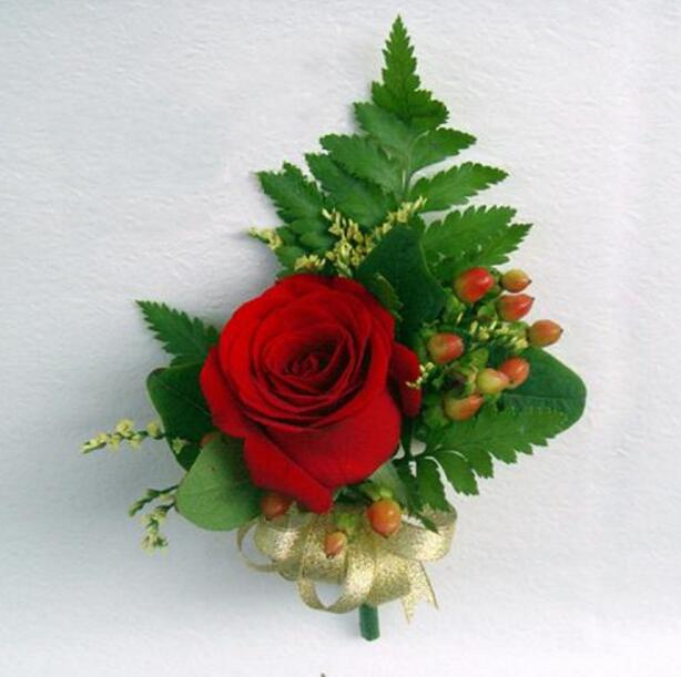 【胸花-玫瑰(6个起售)】红玫瑰,相思豆,发配绿叶、缎带。
