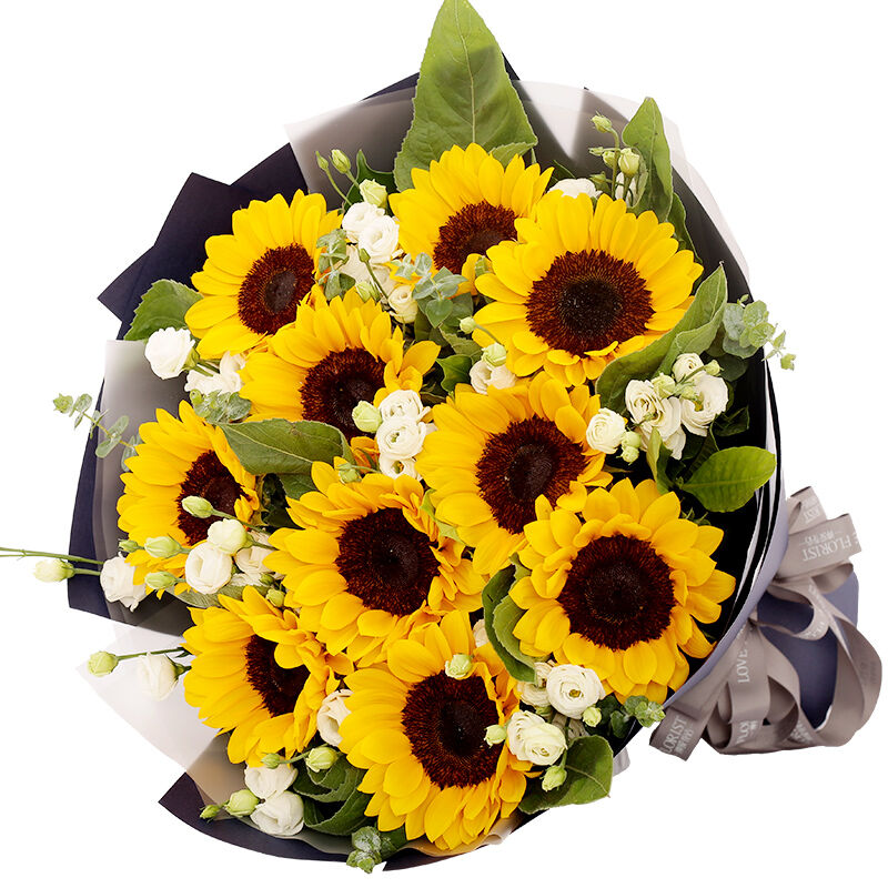 花材: 10支向日葵,搭配洋桔梗、绿叶。