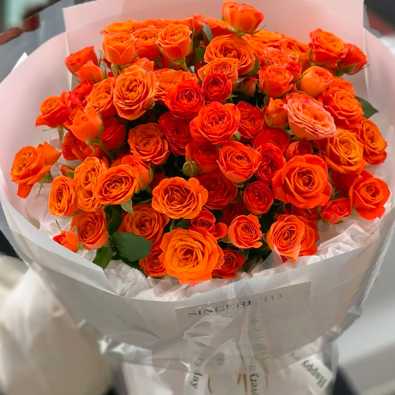 花 材:精选19枝多头橙色芭比(珍贵稀少花材,请提前预定)