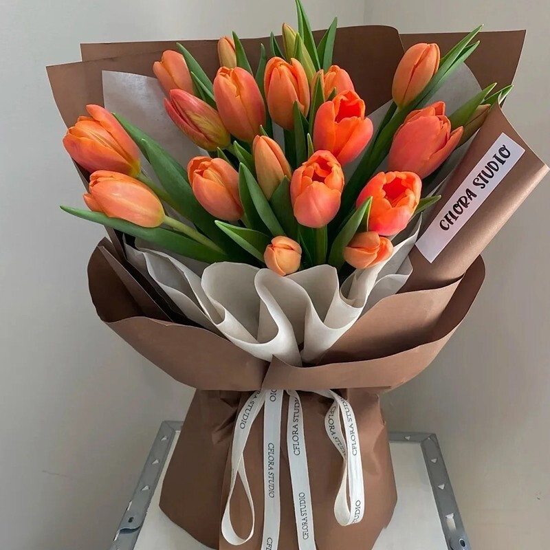 花材: 19朵橙色郁金香。(郁金香为季节性花材,花期为3-5月,需提前订购)