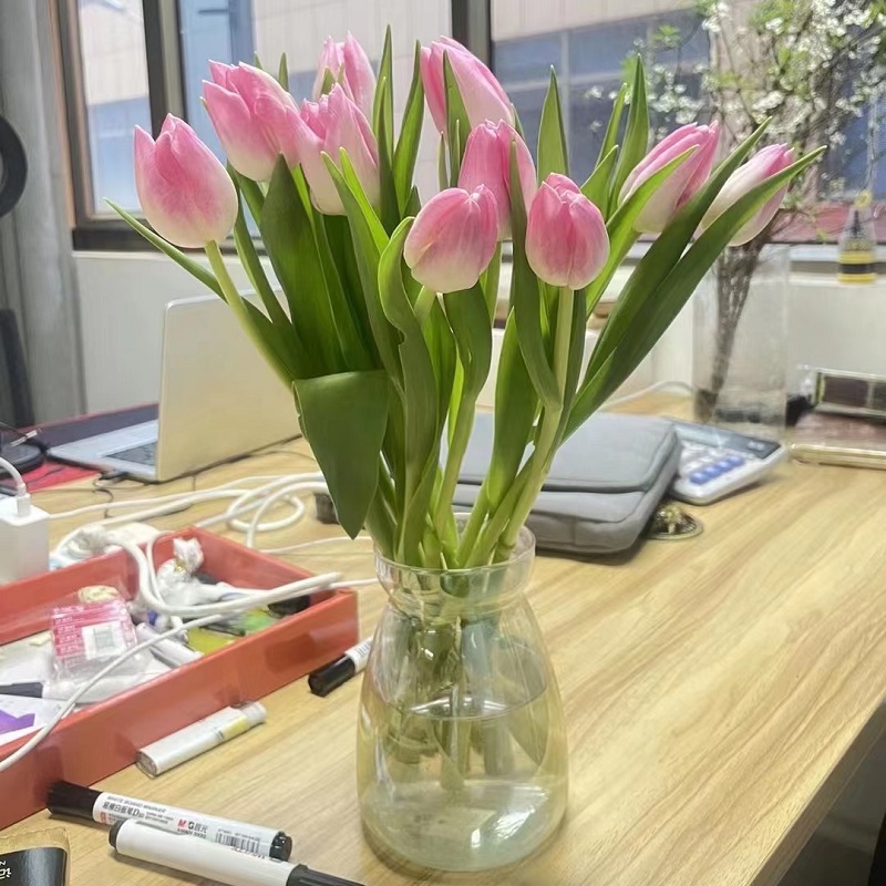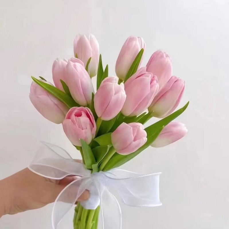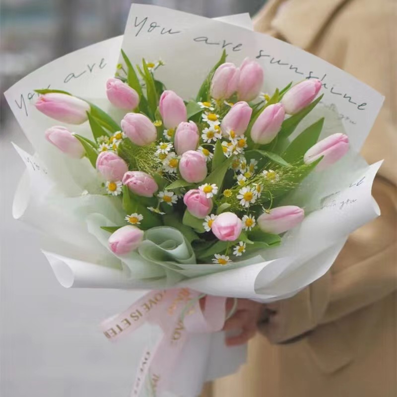 花 材:精选19朵粉色郁金香,搭配小雏菊等配花装饰。(郁金香为季节性花材,花期为3-5月,需提前订购)