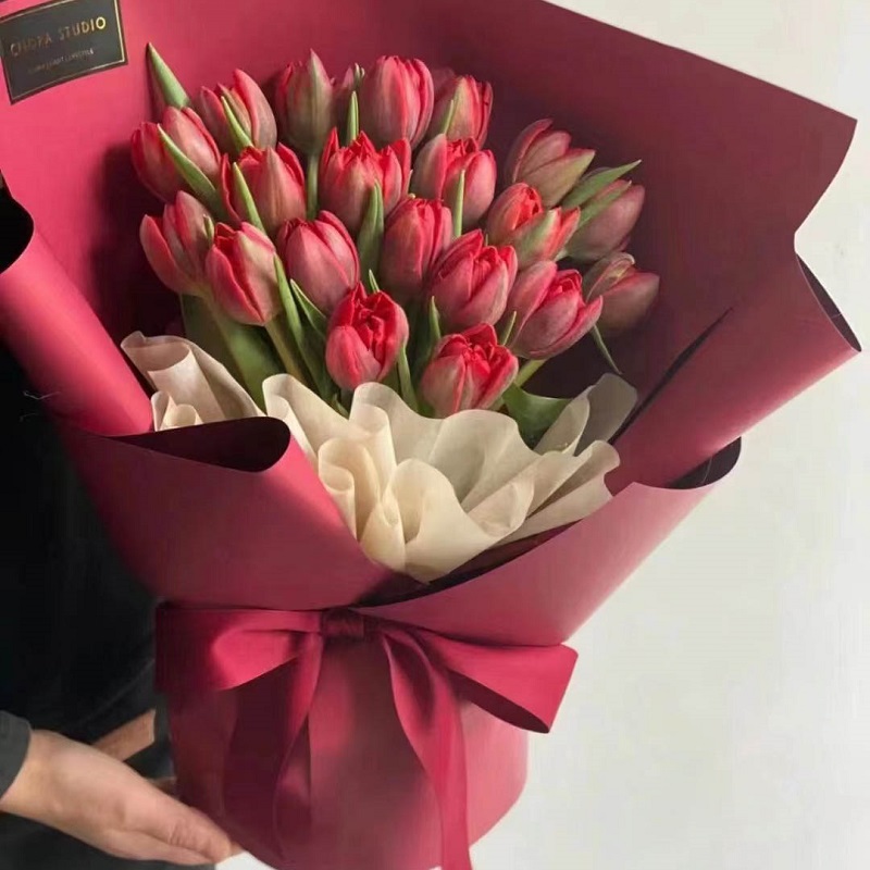 花 材:精选19朵红色郁金香(郁金香为季节性花材,花期为3-5月,需提前订购)