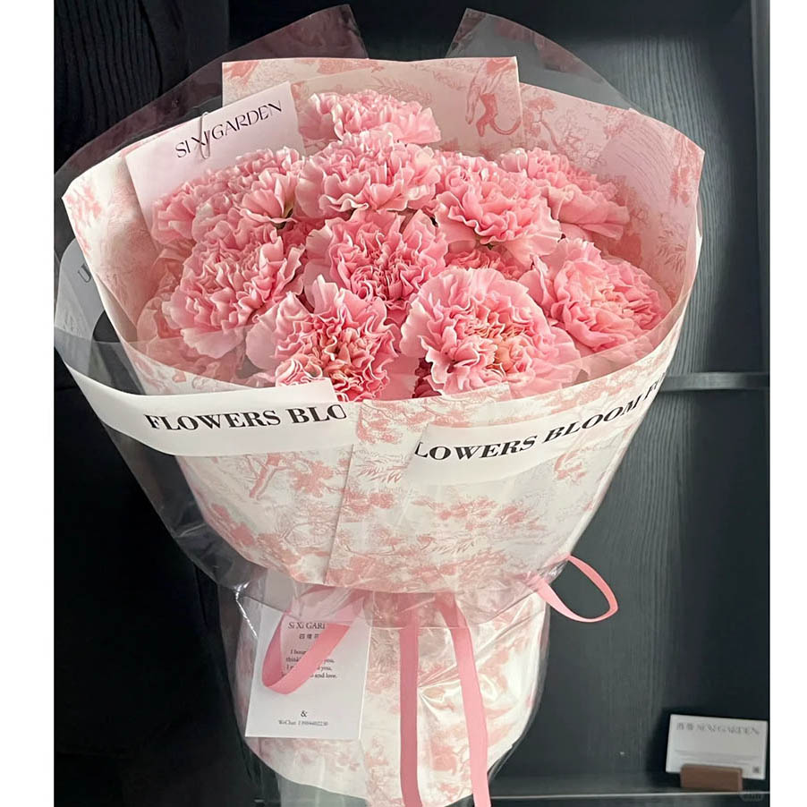 包装: 粉色小香风包装,浅色纸内衬,粉色花纹纸外包(可替换类似纸),玻璃纸最外层装饰,粉色花结。