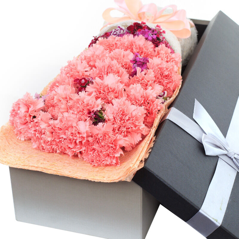 花材: 19支粉色康乃馨,搭配石竹梅。