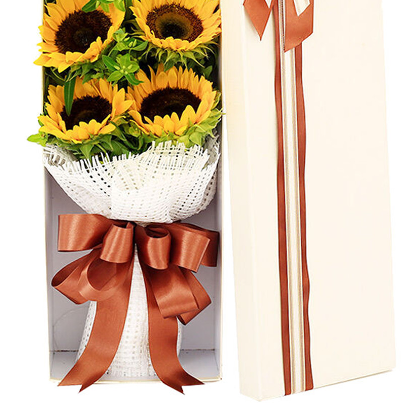 花材: 6支精品向日葵,搭配黄莺或绿叶。