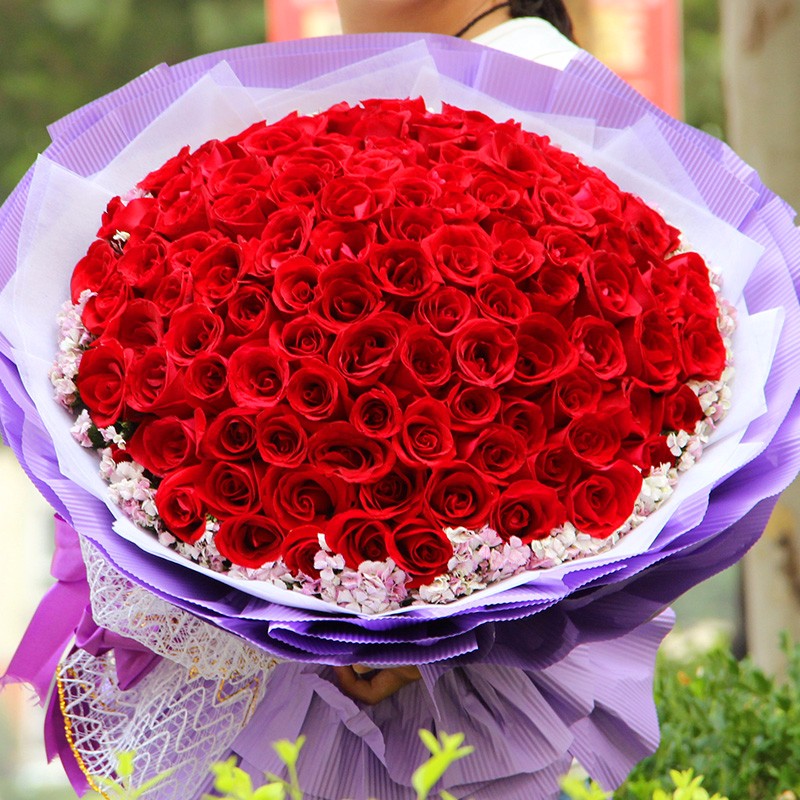 花很漂亮,也很新鲜,闻着好香啊,她很喜欢,谢谢老板这么准时的送到了,下次还来买,33朵玫瑰挺大的,很满意的一次购物,再次感谢老板