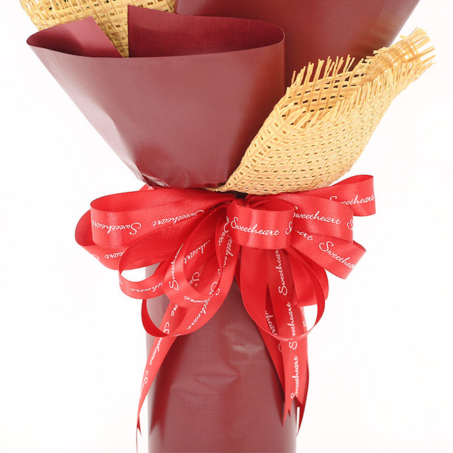 包装: 酒红色卡纸扇形包装,棕色网格纸托底,红色花结束扎。
