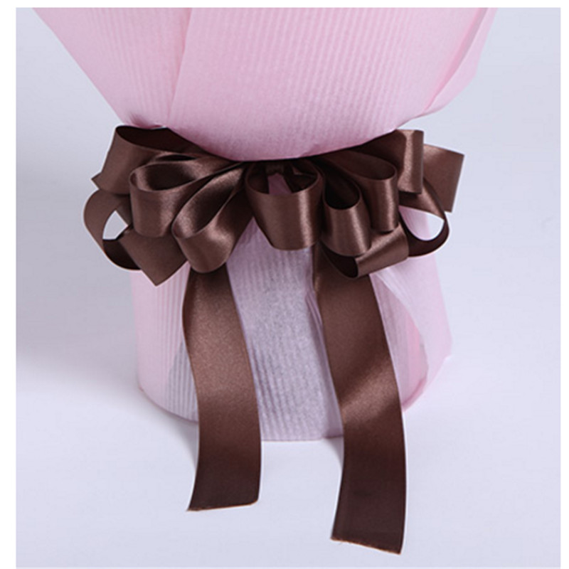 包 装:粉色平面纸包装,深咖色缎带束结.