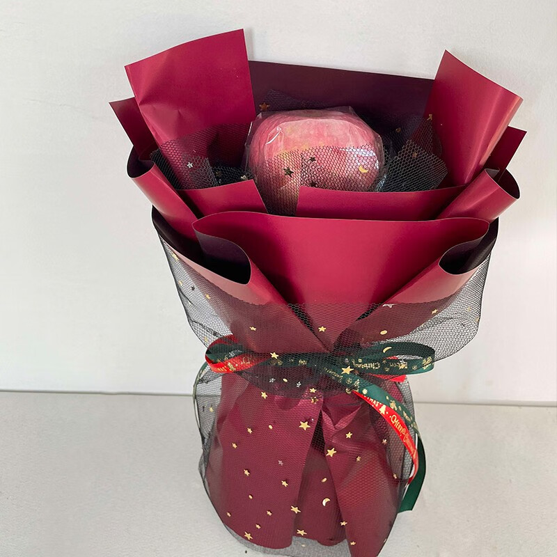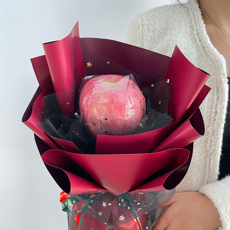 花 材:1个苹果,黑色网纱内衬。