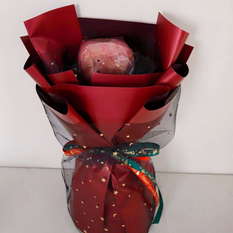 包装: 红色欧雅纸多层包装,黑色网纱外包,红色、翠绿色缎带花结。