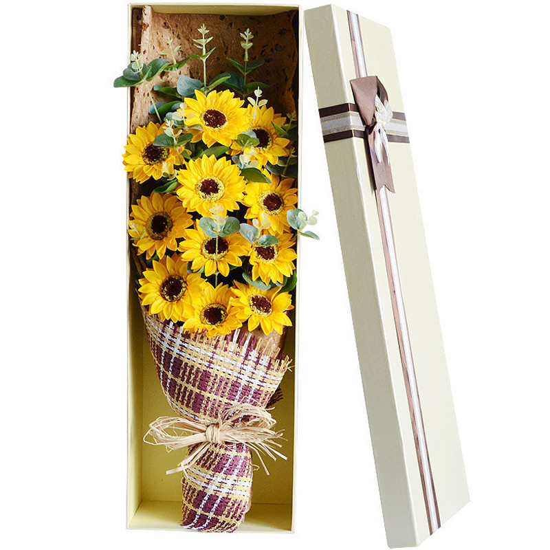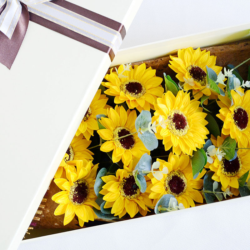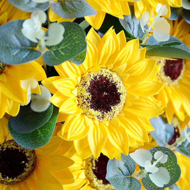 花材: 精选11支向日葵,搭配尤加利叶装饰。