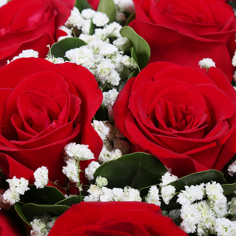 - 满满的爱 - 11支精品红玫瑰,搭配适量白色满天星、栀子叶